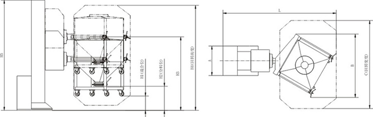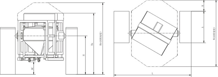 The machine is composed of columns, machine bases, rotary forks, drives, brakes, control systems, and other components. Push the mixing hopper into the rotary fork and lock the nut, start the control system, lift the hopper to the mixing height and position it reliably. The drive system automatically mixes according to the set time, speed, and other data. The mixed operation is completed, the rotary fork is vertically stopped, the hopper automatically descends to the ground, the whole machine stops, and process data is printed. Loosen the tightening nut of the rotary fork and push the hopper out to the next process.
