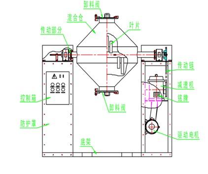 (3) The feed inlet of the double cone tube adopts a quick opening rotary valve, and the discharge outlet adopts a large-diameter 90 ° rotary valve, which is particularly convenient to use.