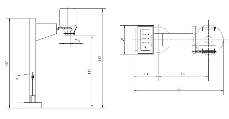 L1 | L2 | W | H | H1 | H2 | H3 | DN | T | kg | kw | |